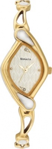 Designed for the urban woman, this model from Sonata’s Sona Sitara series is an attempt to improve the aesthetical lineaments of watches. Avoiding the monotony of a round dial, this watch has a trendy and refreshing contemporary shaped dial that has a metallic finish to it. The bright and refined bezel in which the dial is enclosed has a stylish metallic strap that makes it comfortable to strap the watch. A rotating crown is provided on the right side of the watch case that can be used to adjust the time settings of the watch.